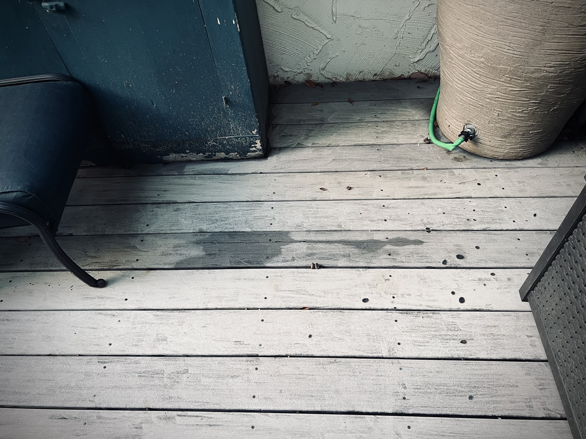 I’ll be staring at that spot every time I’m out there. I’ve considered putting a chair over it but that’s no good. I’ll know. Ideally I’ve considered taking the deck down entirely but that seems extreme. I could hook up the washer for one final round, but that also seems extreme in its unnecessaryness.